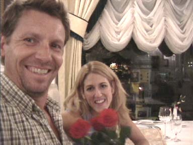 Us dining at the Pupp- Billy kindly bought roses..