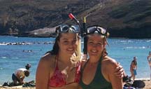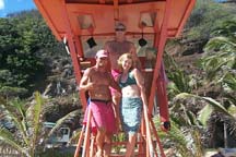 lifeguards and parked ourselves right next to them on the beach (we are not stupid girls as you can see by the photo!) Shameless hussies! Actually, they were really nice and seemed to be flattered when asked to pose with us. (We conversed with them long enough to find out that there had been 9 bomb threats to the preserve/bay and that they were more than just pretty faces....they were discussing economics vs. social conscience when we walked up!) ALOHA and MAHALO, baby!