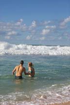 Later we went to the famous North Shore so Mimi could see it and so Erik (He kindly took the day off of work to play tour guide for us) could surf some of the gnarly waves.....and they were gnarly!!! We were completely freaked by how strong the currents in the ocean were here....in fact Monique got leveled by a wave in mid-shin deep water (and mocked by a 7-year-old on the beach!) The intensity of the waves, however, was only half of it