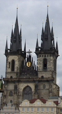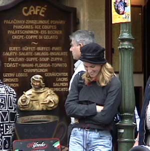 We wandered around Prague all day Sunday down in the old town with tiny cobblestone streets, and the Charles bridge. Cliff said the last time he was here in the 1950s it rained. So, guess what? it rained. We still got to see the sights and standing on the bridge is very nice. We made dinner reservations for "THE" restaurant in Prague (guide says when in Prague you must eat here) the Bellvue on the Moldau (VLtava) river by Charles bridge. We had a great 4 course meal and lots of wine - even Cliff drank a bit more that his usual. We finished dinner with Irish coffee and walked the Charles bridge at night. There is nothing anywhere in the US like this place, at night the buildings look like make believe buildings --speaking of, we are now heading for fairy tale town Cesky Krumlov so gotta go!