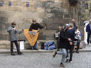 Guys dancing along to classical music on charles bridge. This was one of Billys favorite things, we could have happily stayed there for hours watching them play. Well, go ahead and watch the iMovie of it - you need Quicktime to view this.