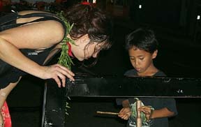 We wandered around a nice little street fair near chinatown. Coki, who cannot resist anyone young or old, just HAD to buy whatever this boy was playing with. He was very cute and did pose for us - out pretty late by himself though!