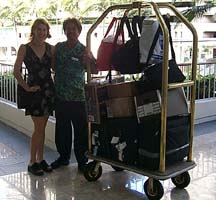 We ran up and packed (late), and had our favorite bellman Thomas help us out (from day 1, he recommended the bartender Tim). He said he would miss us, that is so sweet! Note the astounding amount of bags and crap we had - Coki shipped a lot of it back home (it was work stuff, really we do travel lighter than this!)