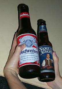 We drank, and Michelles beer was for some reason, VERY HUGE. We wanted to show the size, which brought on a discussion that Michelle wins in her opinion. Do you film the bottles from the top, the bottom, or straight on with people in the photo? You be the judge, Michelle is the only scientist in the group..."still life with beer" wins!